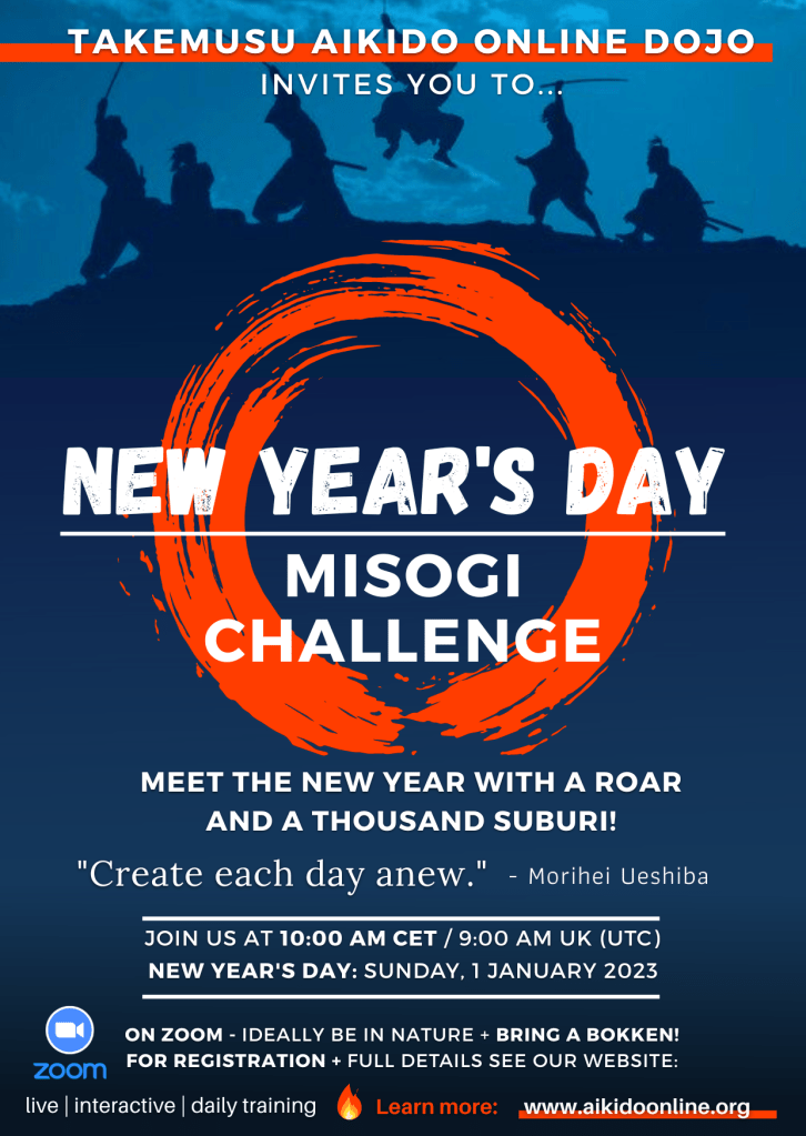 Join the TAKEMUSU AIKIDO ONLINE DOJO via Zoom for our NEW YEAR’S DAY Misogi Challenge 2023