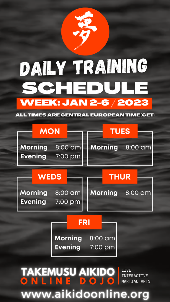 The Takemusu Aikido Online Dojo Daily Training Experience is an in-depth exploration of the art of Aikido – and is an opportunity to go deeply into a modern embodiment practice, rooted in the Japanese Martial Tradition. The training is serious and demanding, but always carried out in a playful and joyful manner, designed to engage and challenge the beginner and seasoned practitioner of all levels. You will be guided in this journey with the help of detailed instruction – on a technical, feeling, and energetic level. The main challenge with the training is to ‘convert’ the audio/ visual teachings into a kinaesthetic feeling-sensation in your own body-being. The most important thing is to allow yourself to listen more deeply to your own body and eventually, through your own efforts, become your own teacher!