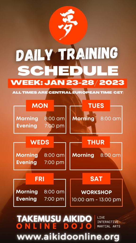 The Takemusu Aikido Online Dojo Daily Training Experience is an in-depth exploration of the art of Aikido – and is an opportunity to go deeply into a modern embodiment practice, rooted in the Japanese Martial Tradition. The training is serious and demanding, but always carried out in a playful and joyful manner, designed to engage and challenge the beginner and seasoned practitioner of all levels. You will be guided in this journey with the help of detailed instruction – on a technical, feeling, and energetic level. The main challenge with the training is to ‘convert’ the audio/ visual teachings into a kinaesthetic feeling-sensation in your own body-being. The most important thing is to allow yourself to listen more deeply to your own body and eventually, through your own efforts, become your own teacher!