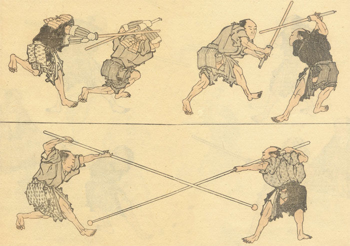 - A third option which we can appreciate more in Jo thrusting attacks is to ‘wedge’ off the line as we receive the attack. This is the initial blending movement that takes place in the Kumijo number 2 and is a more subtle movement involving a tight circular blend that defects the incoming attack while returning us directly to our attacker’s centre line. The same ‘wedging back’ movement takes place in Kumijo 3, 4, and 5 but with different technical responses.